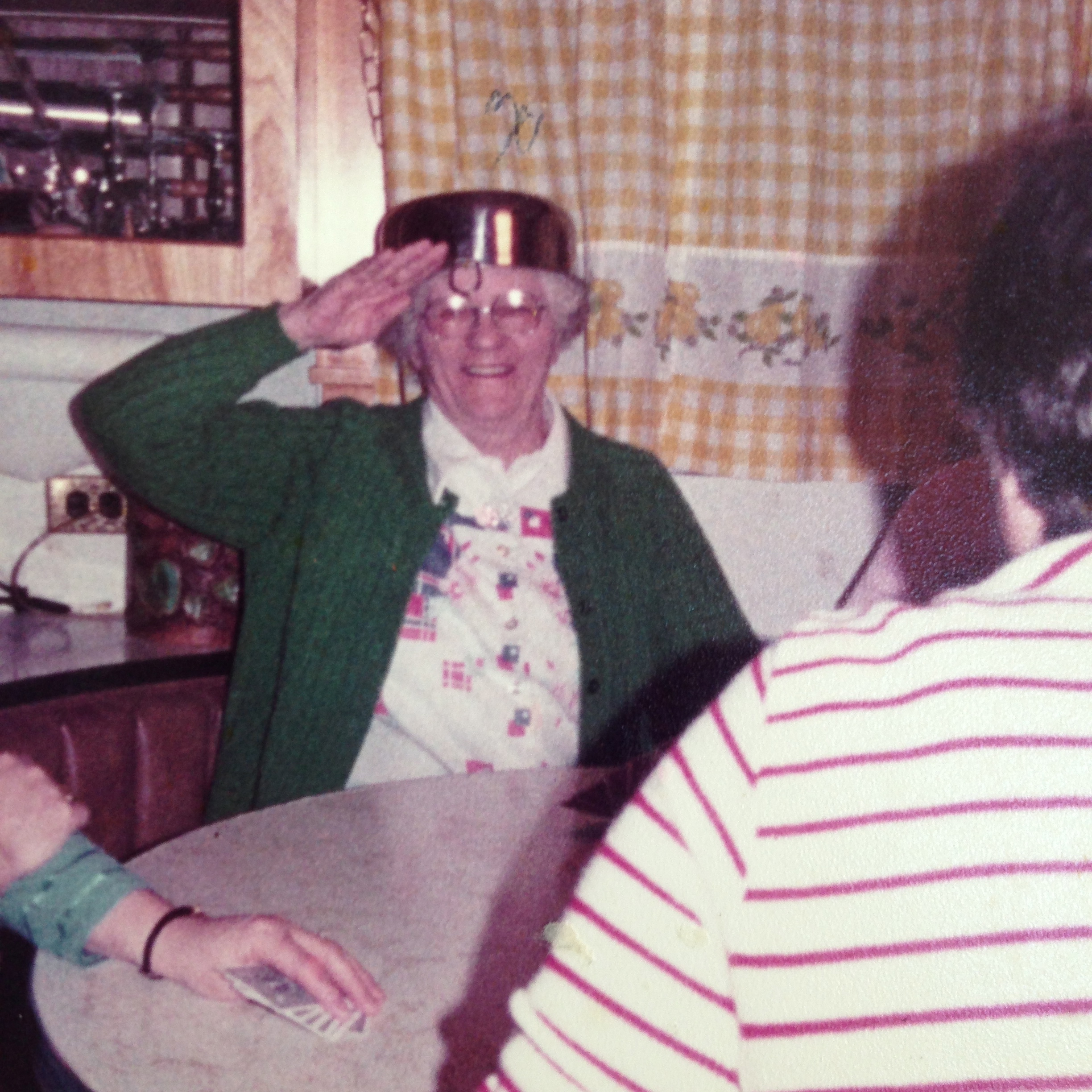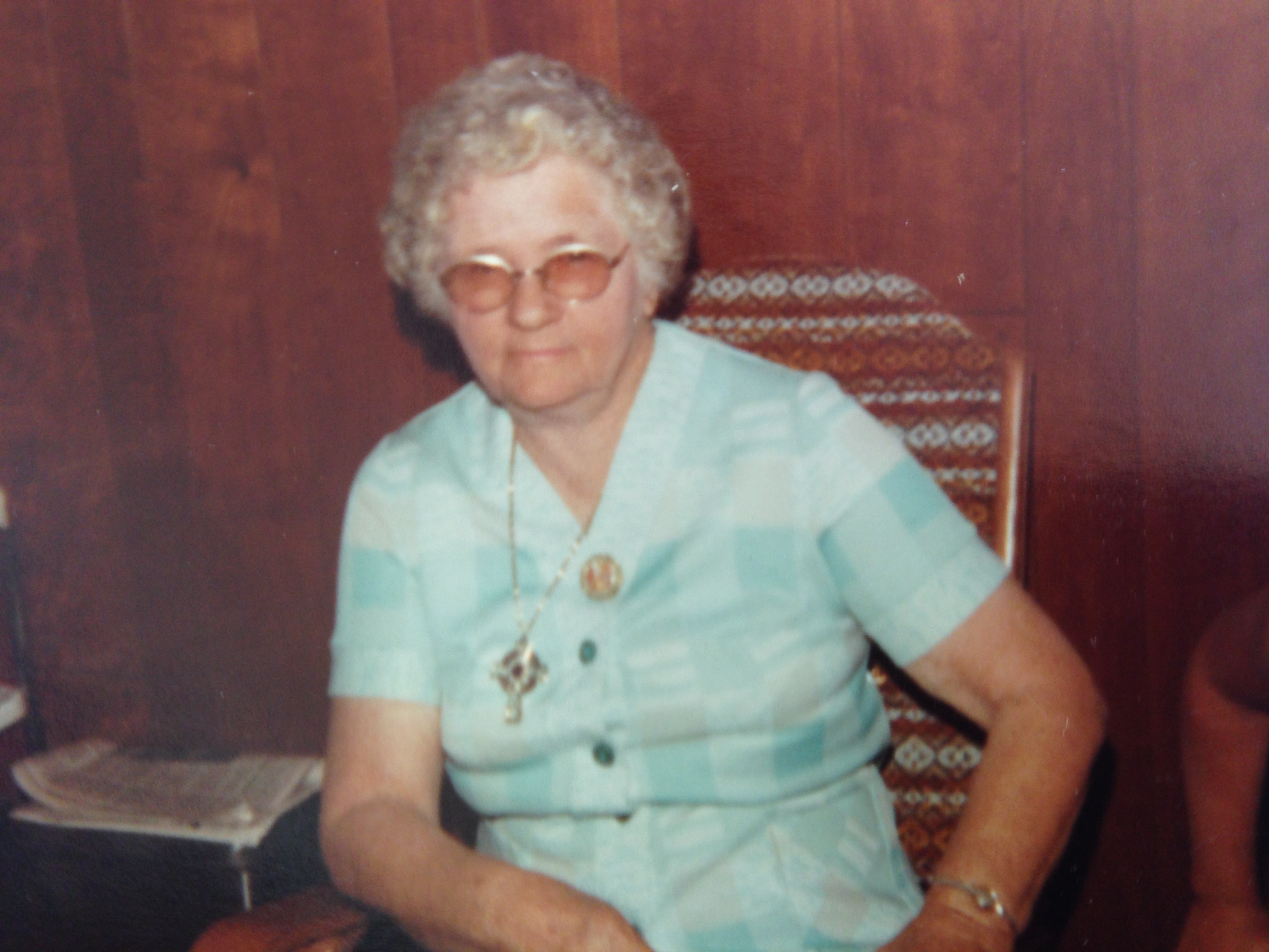 Estelle Hebert at Leon Ouellette house. (date on back may indicate March 1984)